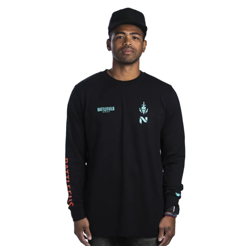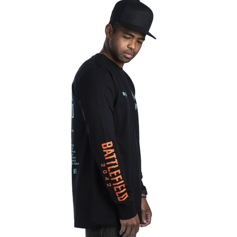 Stand out while you adapt to dynamically-changing weather with this stylish long sleeve tee made of comfortable cotton and featuring Battlefield prints on the chest, sleeves, and back.