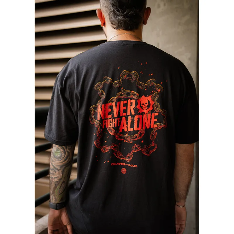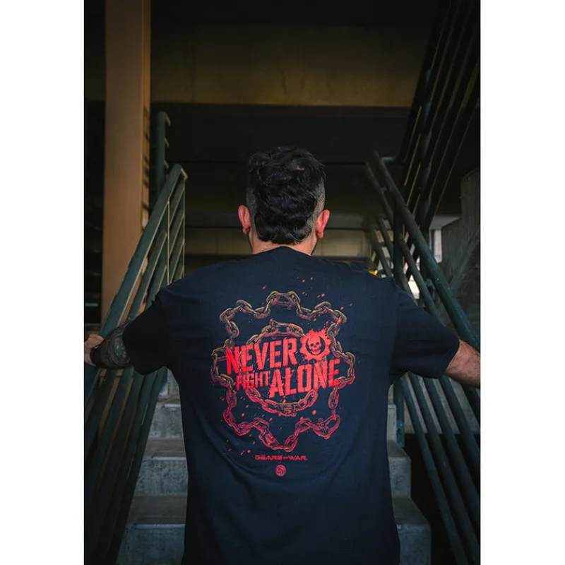 glitch Gears of War “Never Fight Alone” Year 2 T-shirt designed by Matt Ryan Tobin Best Sale