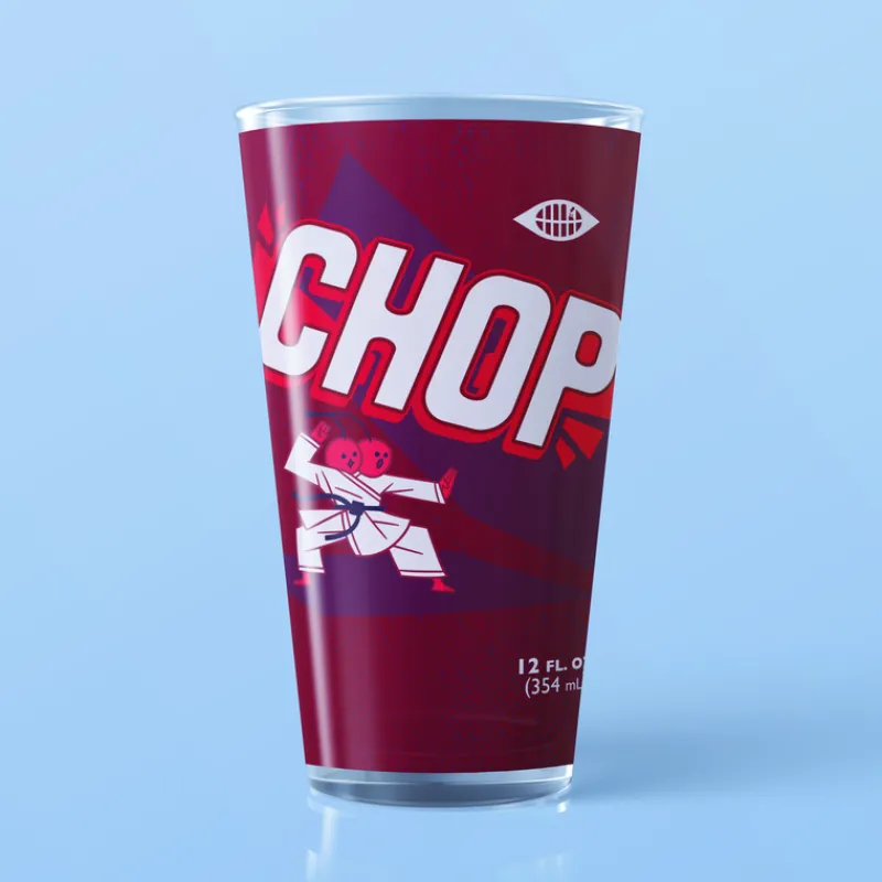 Chop right through thirst with your favorite Mouthtown beverage in this color wrapped pint glass.