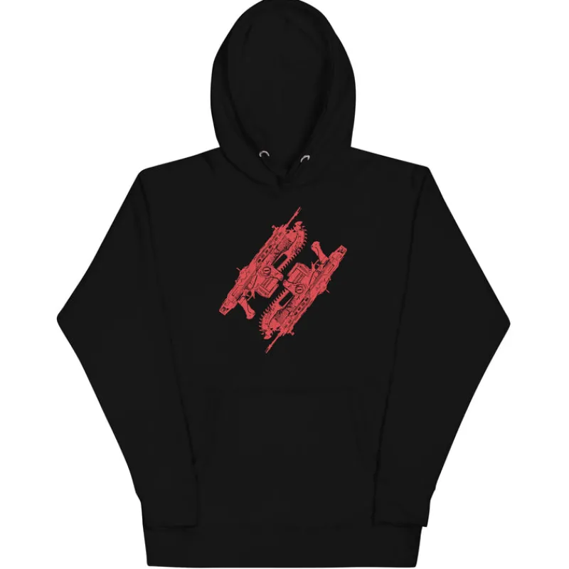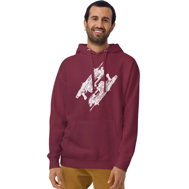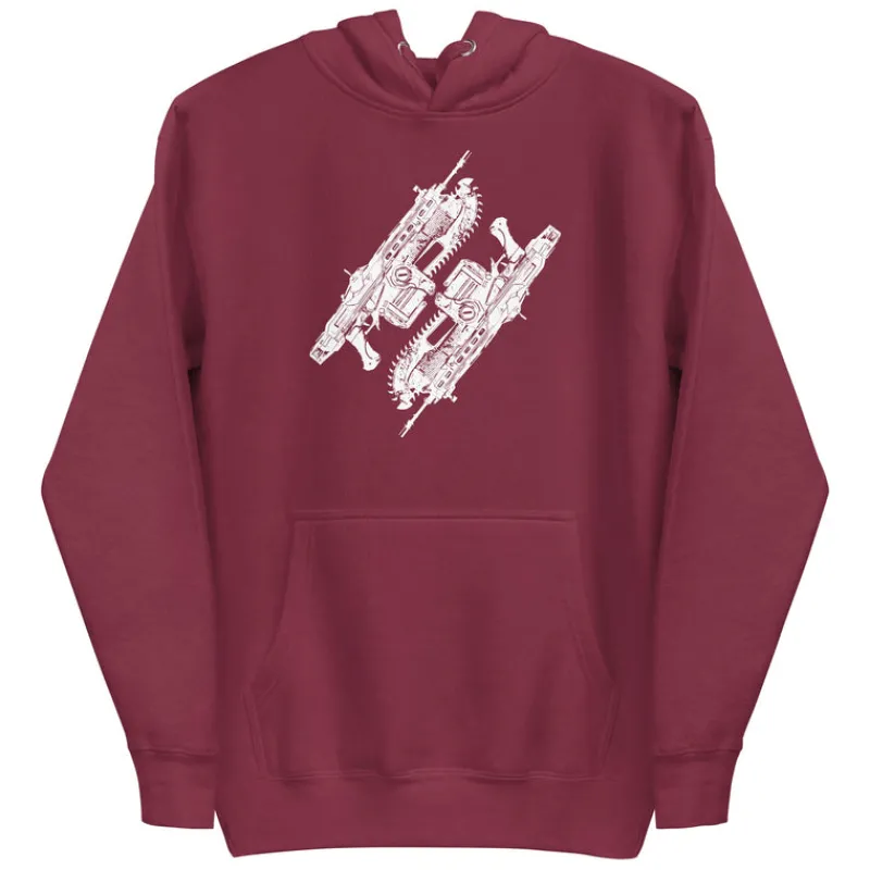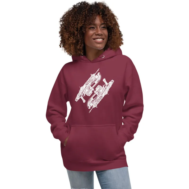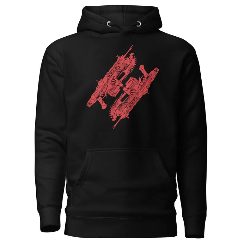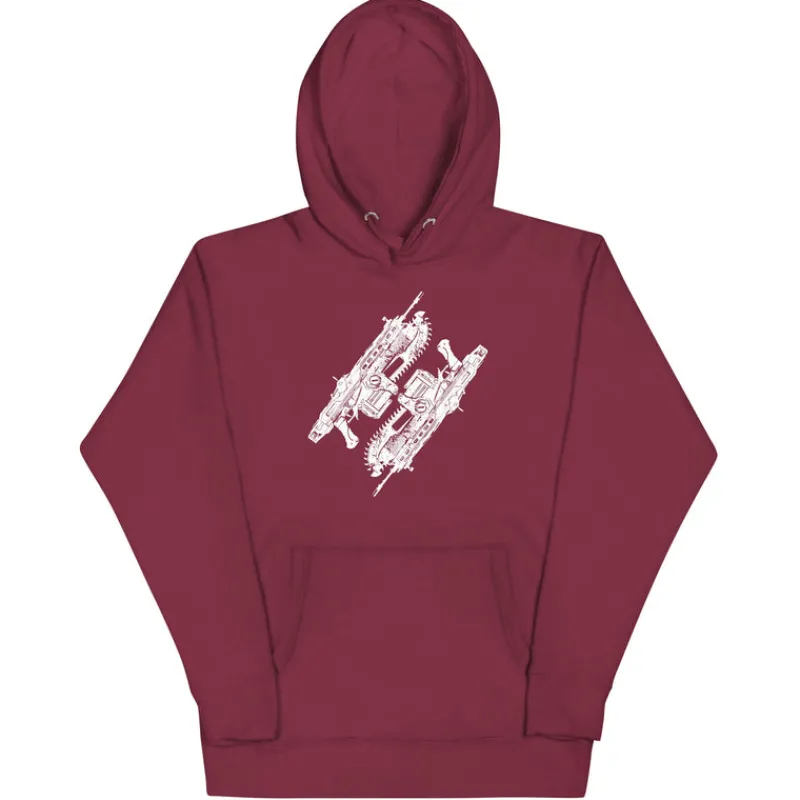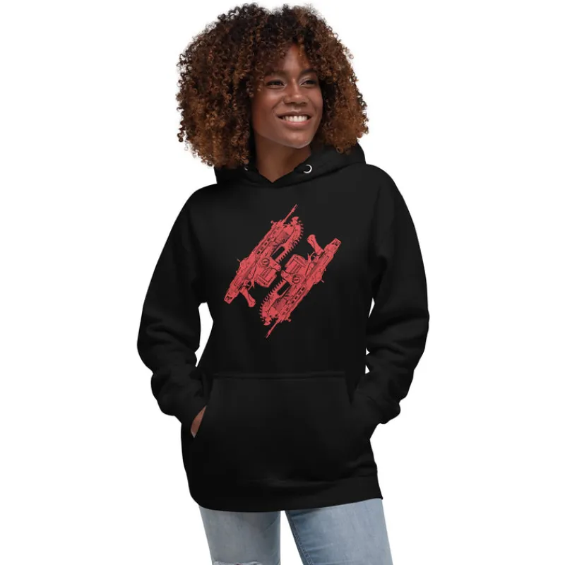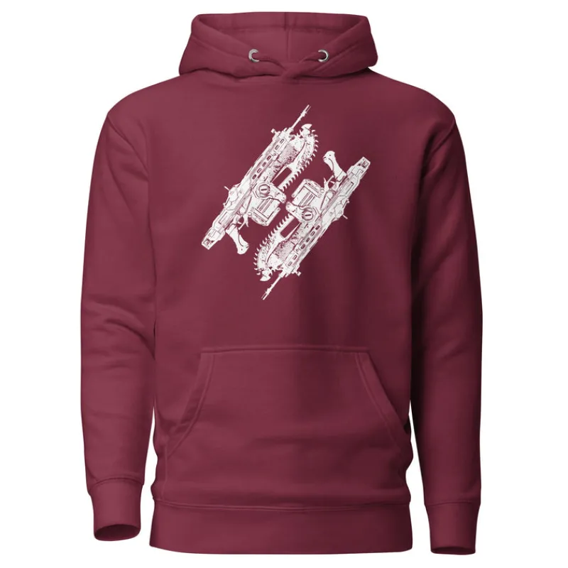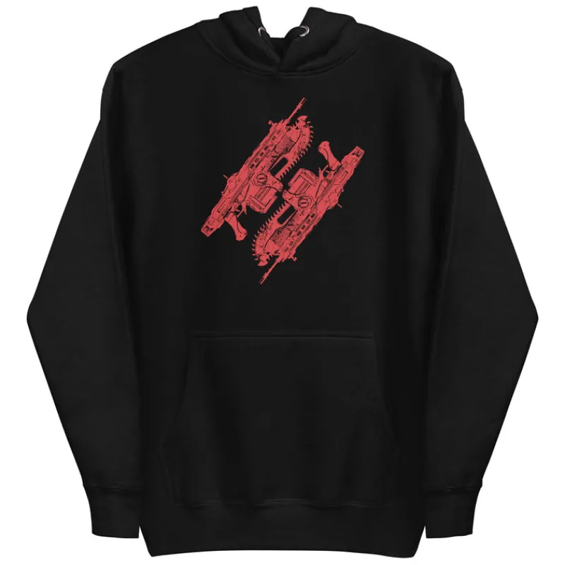 Keep cozy and warm in this comfy hoodie featuring a pair of the iconic Lancer MK II.