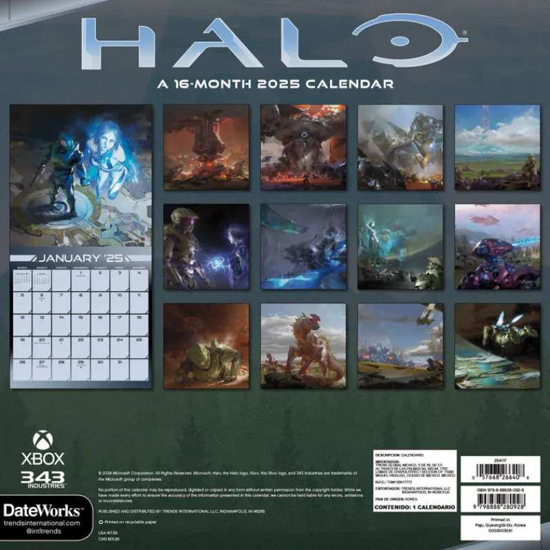 Master Chief is back and better than ever in this compilation of the Halo video game series. Continue his story as you fight to defeat evil with this 2025 Halo Calendar by your side all year long. DateWorks Wall Calendars feature a calendar page for each month of 2025, as well as the last four months of 2024. Each monthly calendar spread features enough room to mark important dates or write down reminder notes – making them perfect for staying organized and productive all year long. 2024-2025 Calendars make a great gift for anyone on your list!