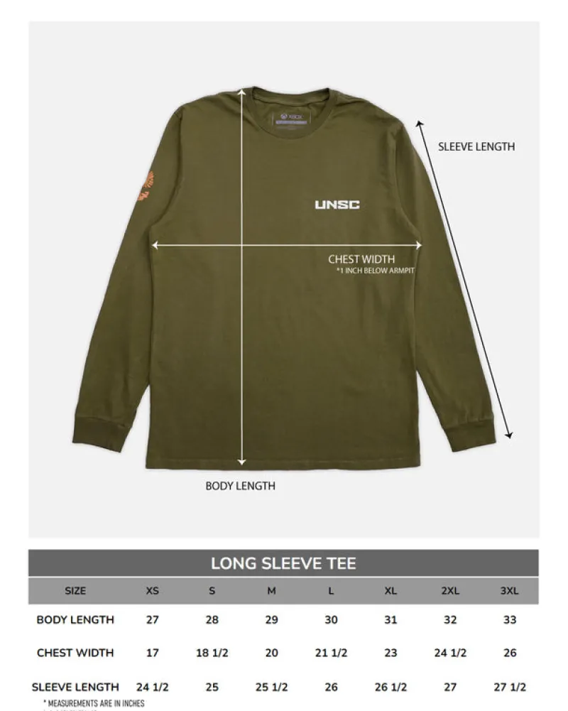 This custom cut, heavyweight, long sleeve tee is inspired by the gear that the elite Spartans wear on base when they’re not donning the MJOLNIR powered armor. Available in limited quantities, and only from this UNSC Fleetcom Exchange!