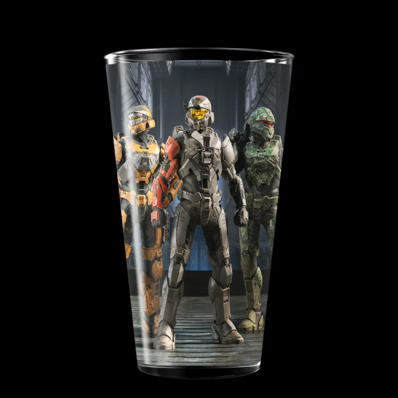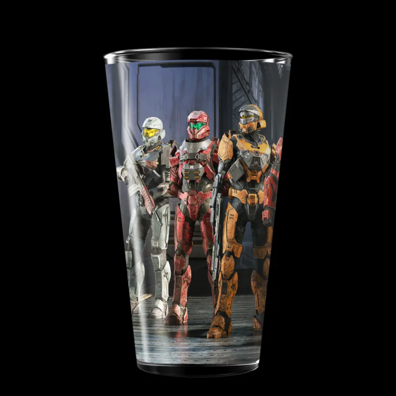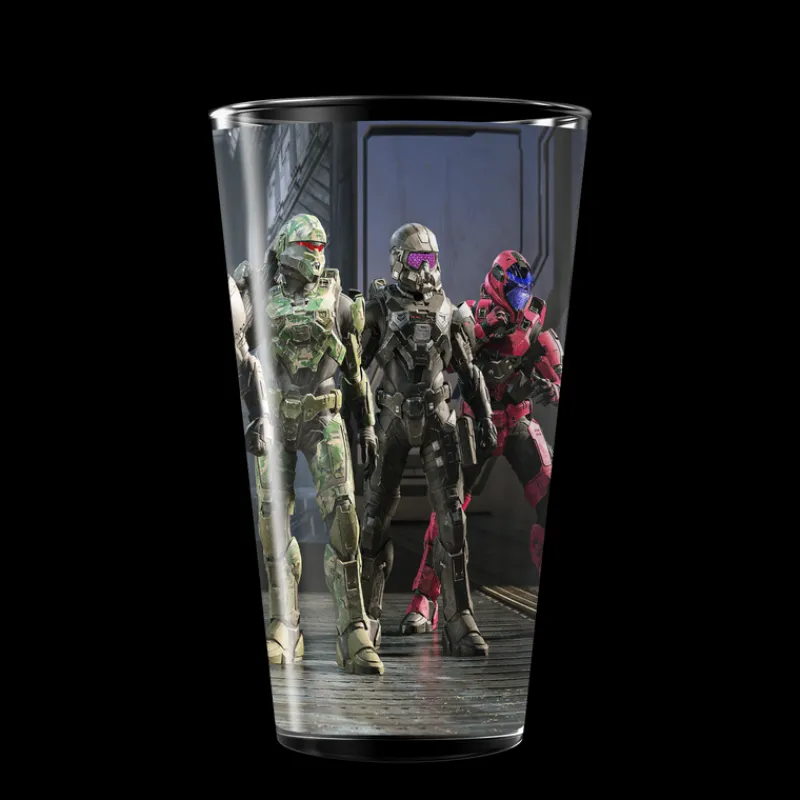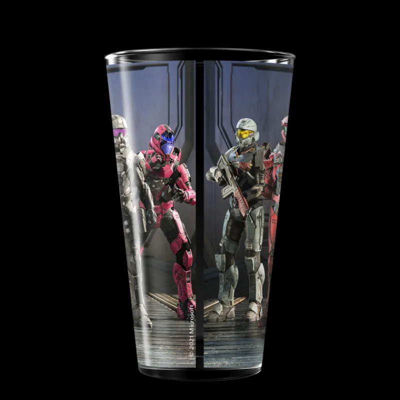 The Halo Infinite team stresses the importance of staying hydrated while playing games. This glass, with a wrap-around print is perfect for water breaks between missions and matches.